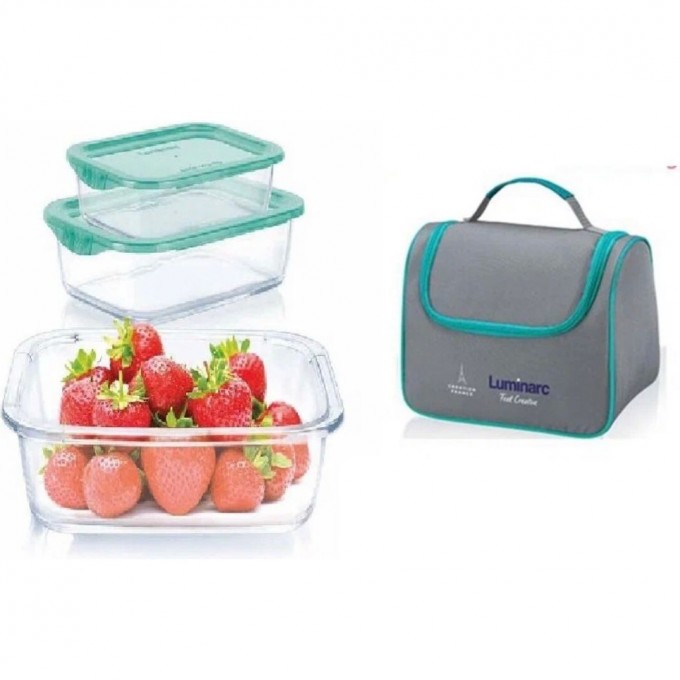 Набор контейнеров LUMINARC KEEP'N'BOX 3 предмета (380 мл, 820 мл, 1220 мл) + термосумка (тюркуаз) Q9832