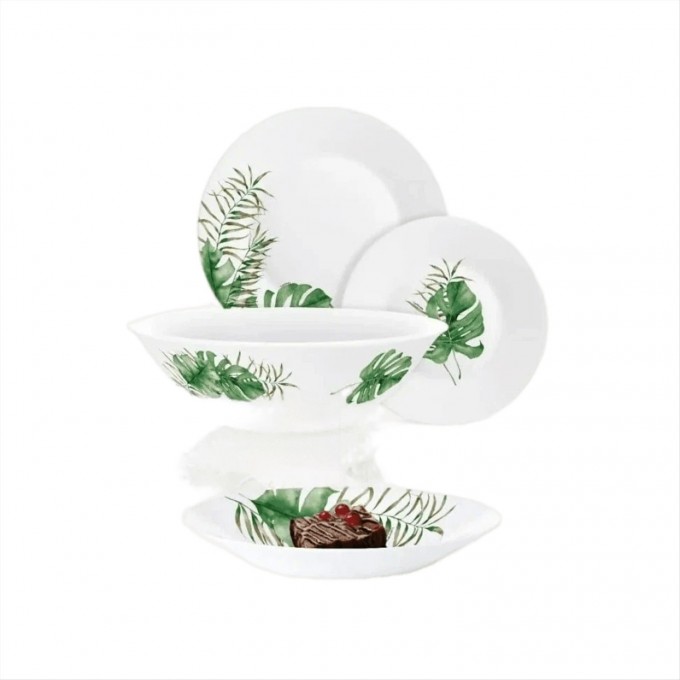 Столовые сервизы бренда Luminarc изготовлены из высококачественного ударопрочного стекла, которое устойчиво к появлению царапин, внешним повреждениям и перепадам температур. Стекло не мутнеет со временем и не выделяет вредных веществ. По сравнению с обычной посудой, оно в 2-3 раза прочнее, и при падении разбивается на крупные неострые куски. В процессе использования стекло не тускнеет и не впитывает запахи. Сервизы украшены яркими красочными принтами, что создает настроение за обеденным столом. Можно мыть в посудомоечной машине и использовать в СВЧ-печи.